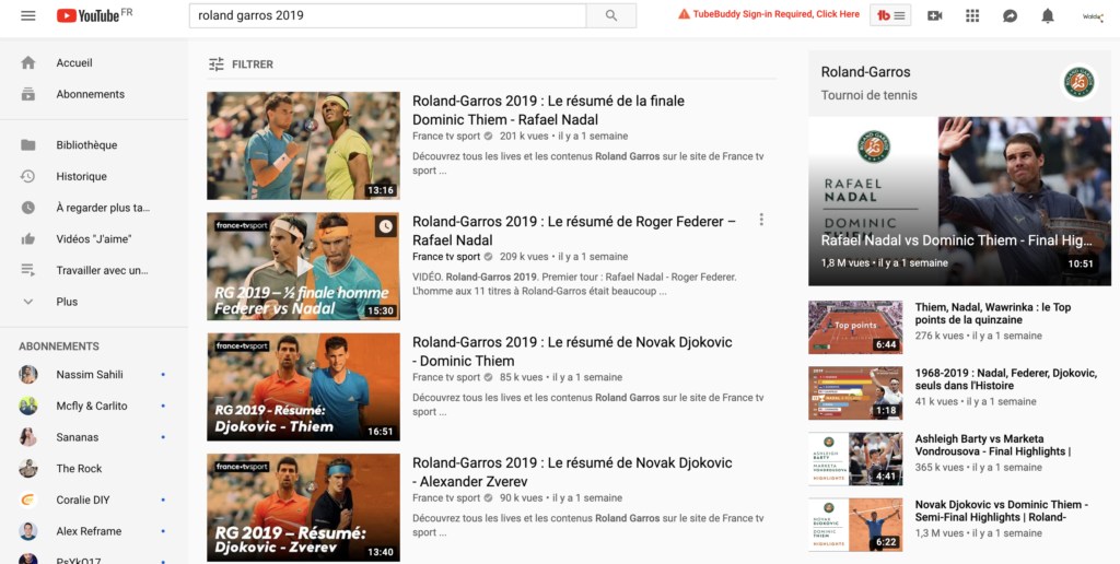 Aucune marque ne ressort sur YouTube – très peu de concurrence sur la requête ‘Roland Garros 2019’ – peut-être une opportunité manquée pour beaucoup.